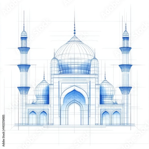 © PixelEra Studio, Obraz premium Architectural blueprint of a building with domes and minarets