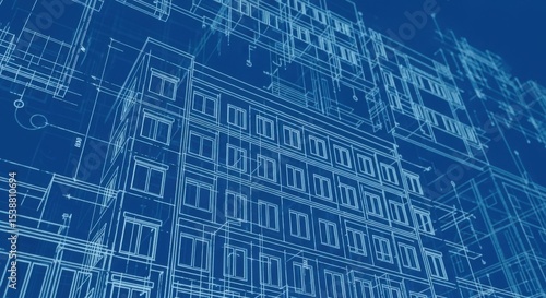 Fototapeta premium Architectural Building Blueprint Design With A Technical Drawing Concept