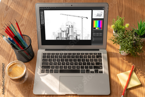 Fototapeta premium Architectural design modish software application for architect business and professional designer