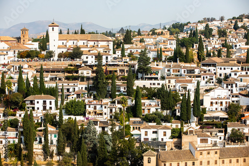 Fototapeta premium Architectural details of the Alhambra fortified palace complex and Granada city