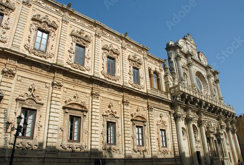 © aliberti, Fototapeta premium architectural details of the Basilica of Santa Croce, wonderful baroque church in the historic center of Lecce in Salento in Puglia.
