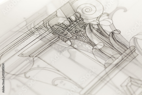 © Uladzimir, Fototapeta premium architectural drawing - detail column