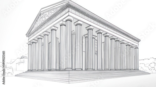 © Almahyra, Obraz premium Architectural drawing of a Greek temple, detailed lines, artistic illustration, perfect for presentations, educational materials