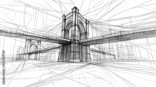 © Jojo*, Fototapeta premium Architectural drawing of a suspension bridge.
