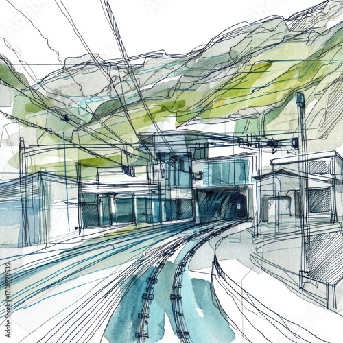 Obraz premium Architectural drawing railway tunnel