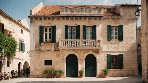 Obraz premium Architectural Elegance: Building Fragment of Beautiful Old Architecture in Trogir