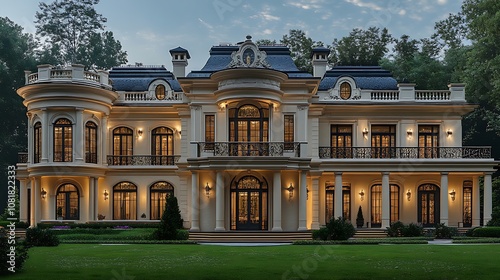 Naklejka premium Architectural elegance in the exterior design of a luxury mansion picture