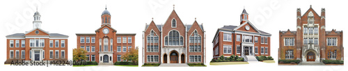 © Jieee Mooo, Naklejka premium Architectural Evolution of Educational Buildings Across Time, PNG bundle collection, Isolated on Transparent Background