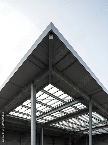 Obraz premium Architectural expanse featuring a triangular rooftop and skylight design