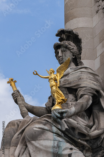 © dbrnjhrj, Fototapeta premium Architectural fragments of famous Art Nouveau Alexandre III Bridge (Pont Alexandre III, 1900). Paris, France.