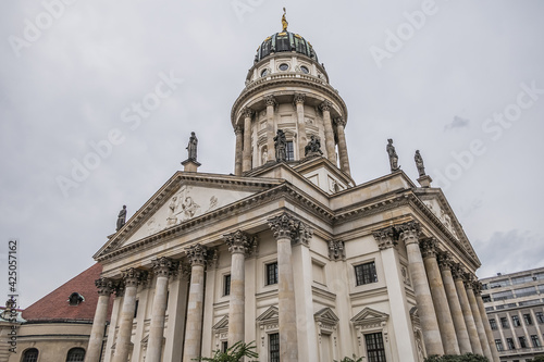 © dbrnjhrj, Fototapeta premium Architectural fragments of French Cathedral (Franzoesischer Dom, 1705) at the Gendarmenmarkt. Berlin, Germany.