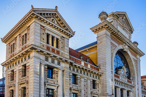 © dbrnjhrj, Fototapeta premium Architectural fragments of Gare du Sud (South Station, 1892), formerly a historic railway station, now a city library and food court. Nice, France.