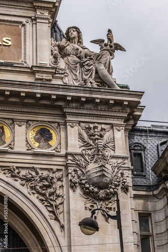 Fototapeta premium Architectural fragments of the BNP Paribas building on 14 rue Bergere (1881). Paris. France.