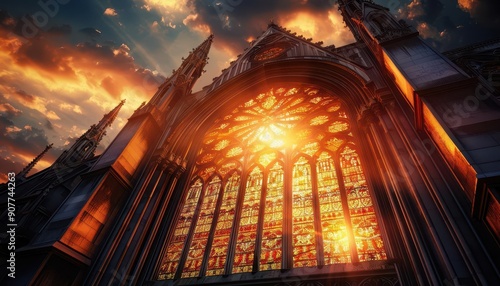 Fototapeta premium Architectural highlights of a historic cathedral, showcasing intricate...