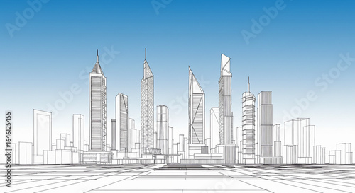 Naklejka premium Architectural Line Drawing of Modern City Skyline
