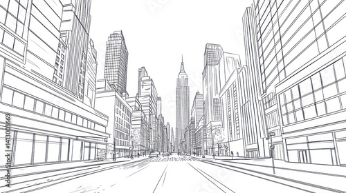 Fototapeta premium Architectural Line Drawing of NYC City Street