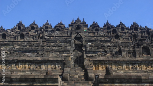 Naklejka premium Architectural masterpieces of the archipelago's past at Borobudur Temple, located in Central Java, Indonesia. This temple was founded by the Syailendra dynasty.