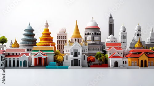 Naklejka premium Architectural Model of Diverse Religious Buildings