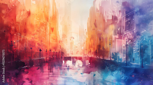 © diboy, Naklejka premium Architectural Painting Watercolor