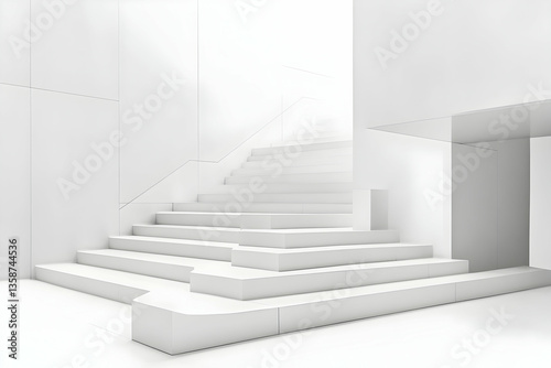 Obraz premium Architectural rendering of a minimalist interior with white staircase