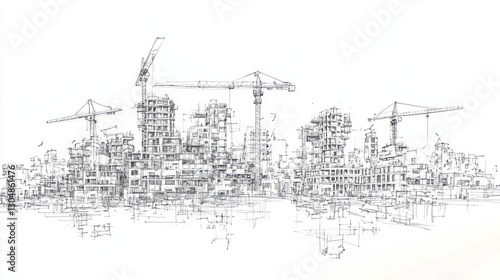 © lestari, Obraz premium Architectural sketch of a city under construction