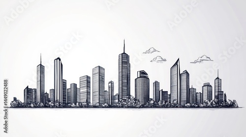 Naklejka premium Architectural sketch of city skyline