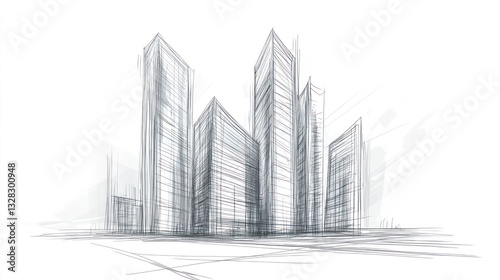 © lestari, Fototapeta premium Architectural Sketch of City Skyline - Urban Design Concept