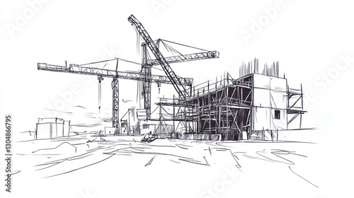 © lestari, Obraz premium Architectural sketch of construction site with cranes