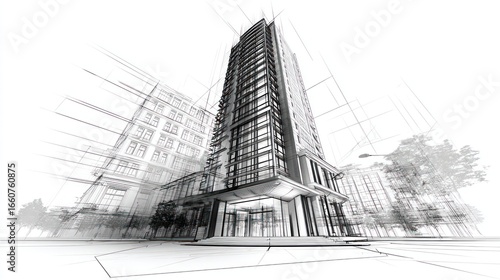 Fototapeta premium Architectural sketch tall building with perspective view