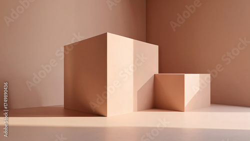 © Angelina ArtWorks, Fototapeta premium Architectural volumes bathed in sunlight and shadow play creating a dramatic empty scene
