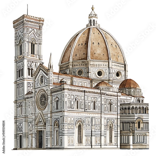Fototapeta premium Architectural Watercolor Illustration of the Florence Cathedral, Duomo, Italy.