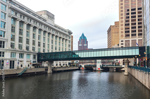 Naklejka premium Architecture and landmarks along milwaukee riverfront