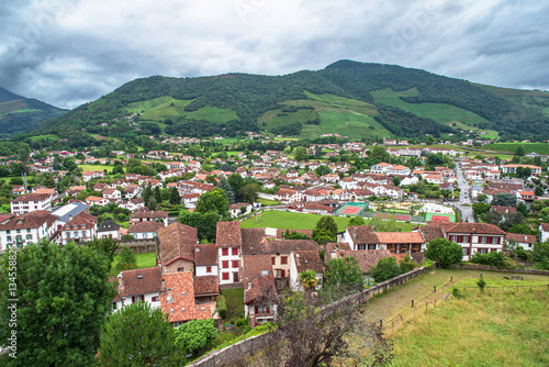 © sissoupitch, Fototapeta premium Architecture and landscape of the town of Saint-Jean-Pied-de-port, in the Basque Country, France