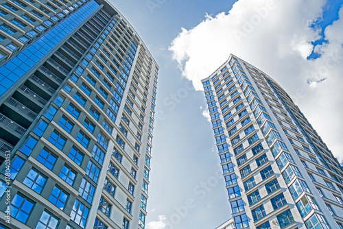 Naklejka premium Architecture Concepts. View of New Construction Site with Civil Building...
