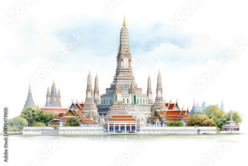 © Rawpixel.com, Naklejka premium Architecture illustration of Wat Arun Thailand building outdoors pagoda.