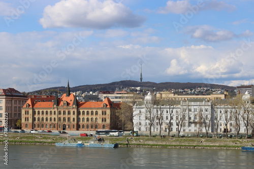 Fototapeta premium Architecture of Bratislava, Slovakia. View on old town from Danube river....