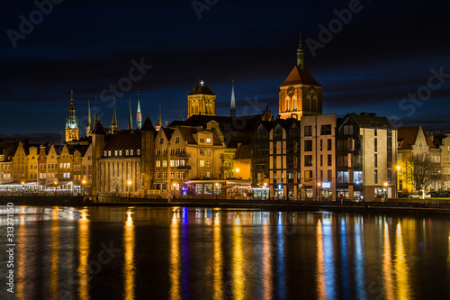 Fototapeta premium Architecture of old town in Gdansk at night, Poland