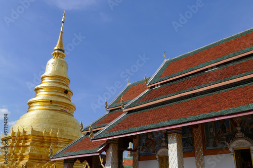 Fototapeta premium architecture of traditional buddhist temple and golden pagoda