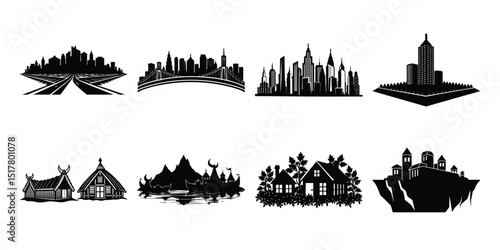 Fototapeta premium Architecture Silhouettes – Temples, Domes, and City Skylines