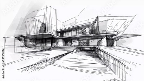 © Harjo, Fototapeta premium Architecture. Sketch. Nice drawing of building.City