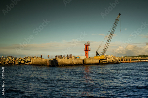 Fototapeta premium Architektura kołobrzegu ze statku. Port morski.