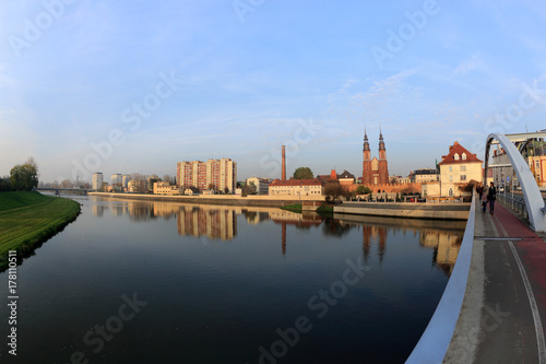 Fototapeta premium Architektura miasta Opole, widok od mostu i rzeki Odra.