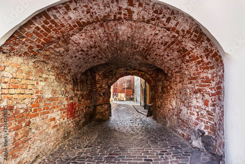 Fototapeta premium Archway in courtyard in historical center in Riga Baltic