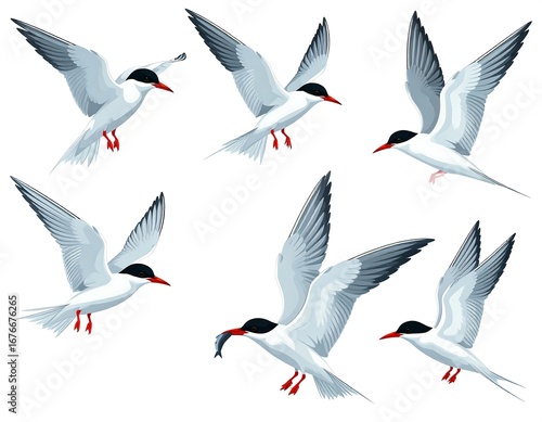 © Bibi, Obraz premium Arctic birds in flight, various poses