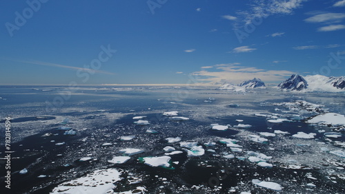 Obraz premium Arctic Epic Ocean Mountain Landscape Aerial View. North Antarctica Open Water...