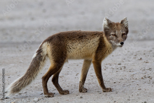 © Sandra, Fototapeta premium Arctic fox in his summer fur in the Russian ghost town Pyramiden on Spitsbergen.