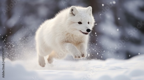 © Fly Frames, Fototapeta premium Arctic fox jumping in snow at winter