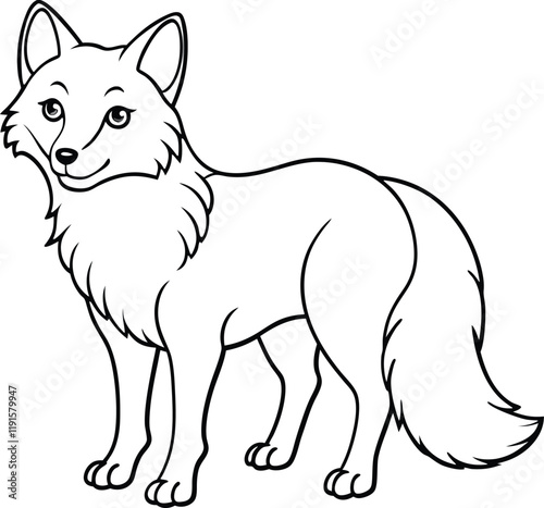 © Bharotray, Obraz premium Arctic fox line arts with white background.