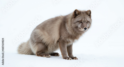 Obraz premium Arctic fox sitting on snow-covered ground in winter landscape