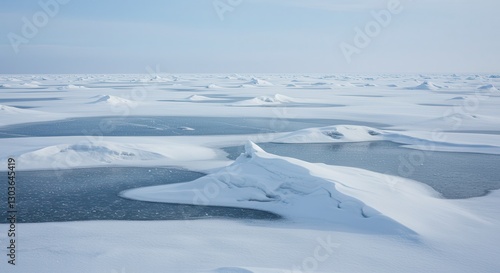 Obraz premium Arctic Ice Landscape with Snowdrifts and Open Water Under Bright Sky